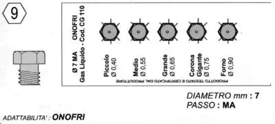 Set 5 ugelli 7ma gas metano piano cottura onofri MicromicMICROMIC